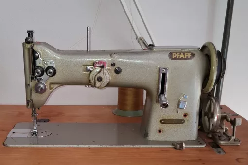 Unsere erste Industriemaschine, eine Pfaff 138. Sie ist unser Allrounder, wir nutzen sie für alles. Ob Kleidung oder Taschen, sie schafft fast alles was unter ihren Fuß geht. Wir nähen hauptsächlich Kleidung mit ihr, Hosen, Hemden und auch Unterwäsche. Sie wurde für die Herrenkonfektion gebaut und steht heute noch in vielen Schneidereien. Als zuverlässige Industriemaschine...