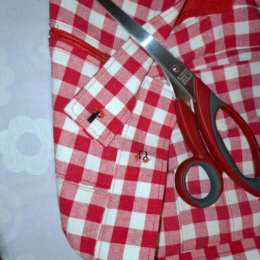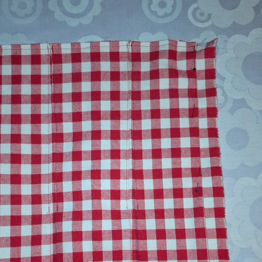 Ich lege Kellerfalten, das heißt die Falten werden links und rechts eingefaltet. Da ich Karos von ca. 1,1cm Weite habe werde ich mich an diesen orientieren und jeweils drei Karos links und rechts einfalten und feststecken.