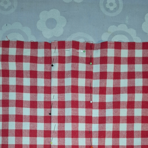 An der Saumkante hab ich mit Nadeln abgesteckt, so das mir die Falten nicht auseinander gehen wenn ich zur Nähmaschine gehe.
